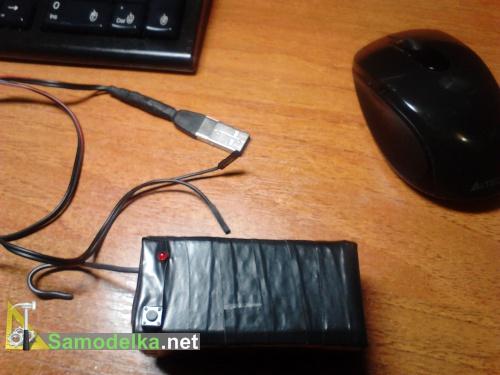 Для зарядки своего девайса использую usb, сзади на корпусе у меня расположены два контакта, так же для этого был сделан шнур с usb на два «пина». Если не будете использовать контроллер для зарядки литиевых аккумуляторов (я не использовал) то заряжать это чудо от usb около 30-40мин. (чтобы вникнуть перезарядки аккумулятора, прибор практически не разряжает аккумулятор, поэтому одной зарядки хватит на долго)