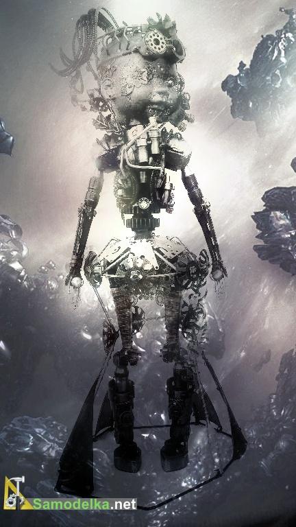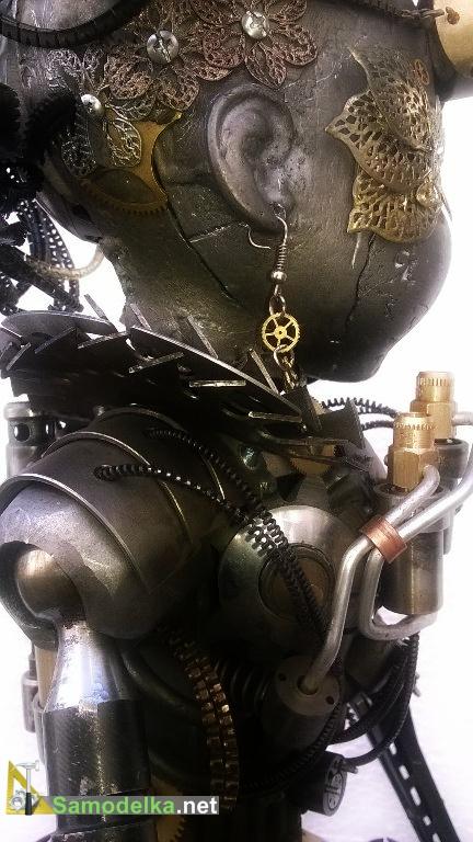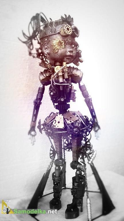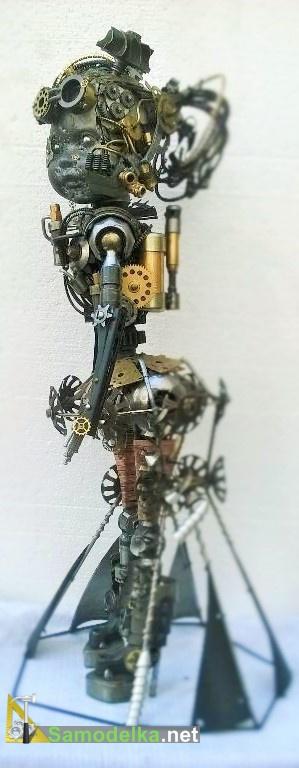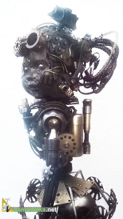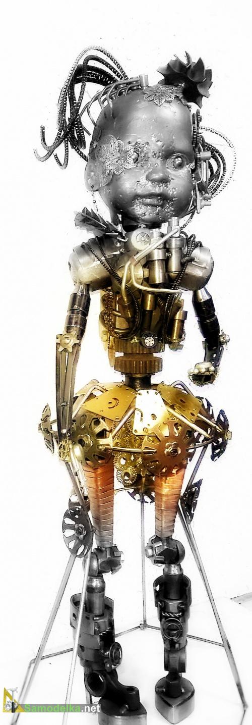 При создании этой апокалиптической куклы помимо традиционных автодеталей был использован всякий красивый хлам, т.к. тема все таки обязывает…лицо отлито из свенца,шестерни часов,дешовая бежутерия…..