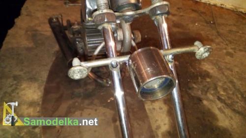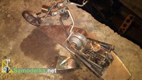 Нажимаем на байк чтобы сработала подвеска и из выхлопной трубы вырывается достаточно большое пламя чтобы подкурить сигарету с руки.
