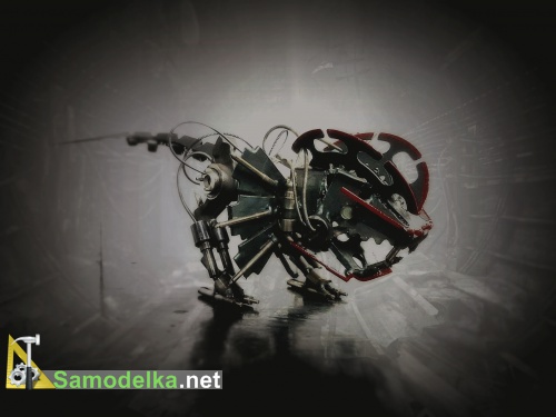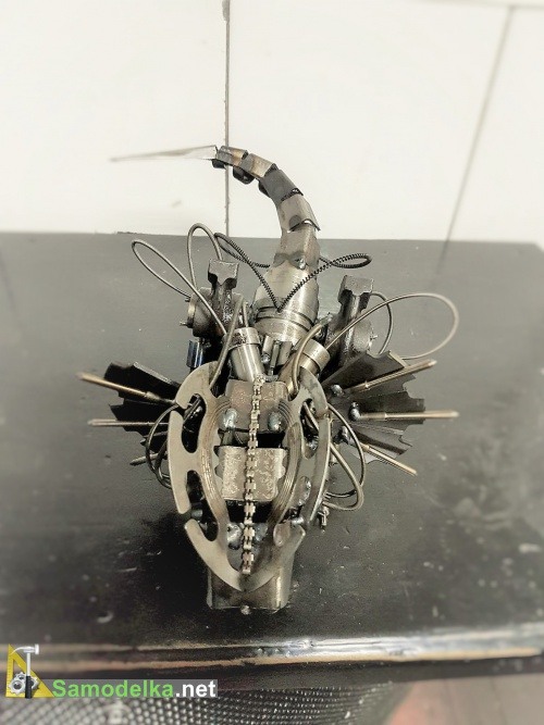Вот такой вот довольно хищный динозавр родился из авто хлама. По-моему вышло очень выразительно, особенно если присмотреться к деталям…